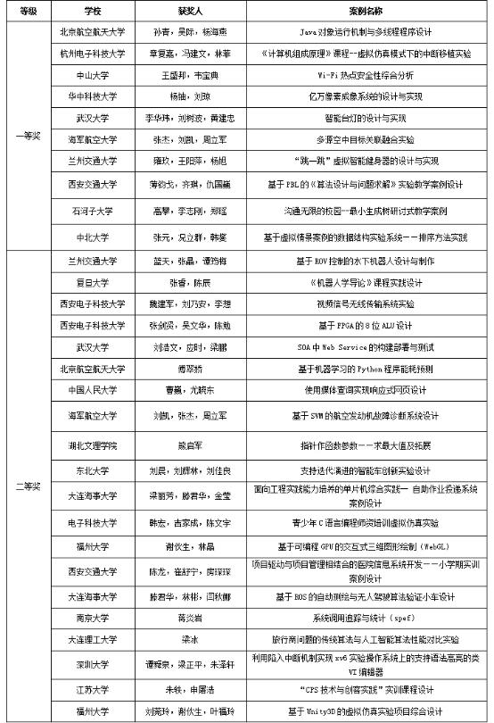 附:第四届全国计算机类课程实验教学案例设计竞赛获奖名单
