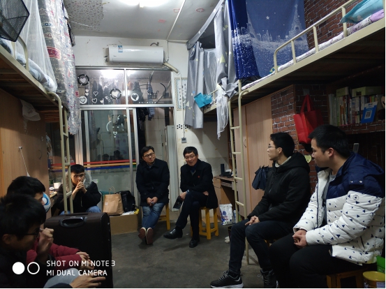 (通讯员 李小华)12月30日晚,副董事长刘伦钊到北区员工公寓15栋和21栋,与所联系班级计算机科学与技术1711班同学进行交流。williamhill威廉希尔官网经理杭波、党委副书记李小华、计科1711班班主任张勇博士随同。