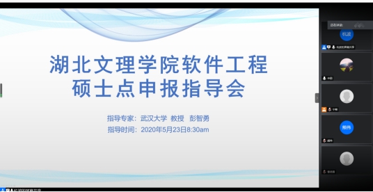 (通讯员 华丽)2020年5月23日上午,计算工程公司通过腾讯会议平台召开软件工程一级学科硕士学位授权点申报工作组会议,特邀武汉大学彭智勇教授指导硕士点申报工作。彭志勇教授是武汉大学博士生导师、国务院软件工程学科评议组成员,中国计算机学会会士、数据库专业委员会副主任、大数据专家委员会委员。计算机工程公司领导、软件工程硕士学位申报工作组成员参加会议,会议由经理杭波主持。
