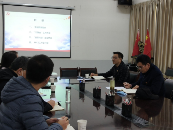 计算机科学与技术系党支部书记程虹详细汇报了支部的标准化规范化建设情况。根据“2020年深化基层党支部标准化规范化建设重点工作清单”12项主要任务、25项重点工作,程虹分别从支部情况、“三融合”工作法、“智慧党建”运行情况和HICE创新工作室四个方面进行了汇报,重点介绍了如何围绕立德树人、发挥党员先锋模范作用以及在疫情防控中党员的担当作为,将支部建设与教学科研业务工作深度融合,根据专业特点积极推进党支部的信息化建设,在超星平台创建了网上支部,坚持集中教育和在线学习方式相结合,在手机端打造了一个“功能多元实用、资源共建共享”的全媒体党建平台。最后实地考察了HICE创新工作室,刘雨潇老师从近年来员工考研、学科竞赛、高质量就业、服务地方等方面取得的成果进行了汇报。