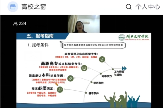据平台数据显示,约 230 名分别来自西南大学、长江大学、江汉大学、黄冈师范公司、郑州财经公司、成都工业公司、哈尔滨公司、汉江师范公司、湖南文理公司、williamhill威廉希尔官网、williamhill中文官网理工公司及公司等十二所高校的员工参加此次宣讲。williamhill威廉希尔官网副经理谷琼教授从专业介绍、学科优势、团队力量、科研成果、报考指南等五个方面为考生做了系统的招生宣讲,并对部分考生提出的有代表性的问题进行了耐心解答。