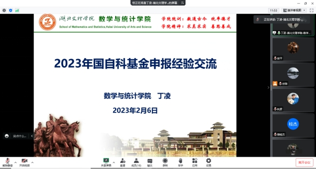 第二阶段由申报人汇报国家自然科学基金申报进展情况。2023年国家自然科学基金申报人分两场次,分别在青年项目会场及面上项目会场就自己的申报文本进度、目前遇到的问题、后续修改计划等进行了汇报与讨论。大家踊跃发言,互帮互助,解决了不少文本撰写及修改过程中遇到的疑难杂症。