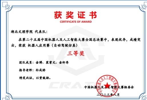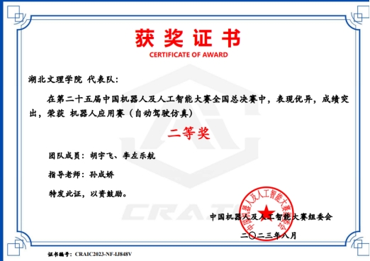 (williamhill威廉希尔官网 教工通讯员 张其林 孙成娇)近日,第二十五届中国机器人及人工智能大赛仿真专项赛全国总决赛在四川绵阳科技城圆满落幕。本次比赛由中国人工智能学会、绵阳科技城新区管理委员会主办,吸引了来自全国各地近1000名高校选手参与。经过多轮角逐,williamhill威廉希尔官网孙成娇博士指导的3支队伍获得全国二等奖2项(廖嘉旺、陈明华;胡宇飞、李左乐航)、三等奖1项(金博、裴紫文、金轩昂)。