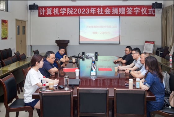 捐赠签字仪式上,济南博赛网络技术有限公司代表介绍了公司的基本情况,希望通过此次捐赠聚焦公司的重点团队建设,助力改善办学条件,同时为校企产教研深度融合注入发展动力。