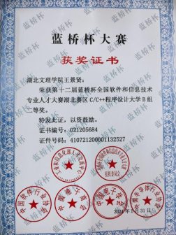 (通讯员 童晓芳)王景贤,女,共青团员,河南新乡人,williamhill威廉希尔官网2018级计算机科学与技术专业1811班员工,2022年以笔试成绩370分、复试222分总排名第十名的成绩通过西北大学信息科学与技术公司软件工程专业研究生考试。在校期间曾获得“一等奖学金”、“大力”奖学金、创新创业奖学金、校三好员工等荣誉。参加国家级老员工创新创业训练计划项目,现已结题并完成验收,获省部级学科竞赛奖项2项,获得中级软件设计师的资格证书。