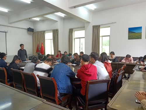 孙祥昆带领大家齐唱《国歌》,毕业班党支部组织委员王子鑫带领大家重温入党誓词。孙祥昆领学了《习近平关于“不忘初心、牢记使命”论述摘编》的部分篇章,并就个人理解进行了发言。全体员工党员和预备党员以小组的形式,围绕学习内容,联系自身实际进行讨论,并进行了大会交流发言。发言中,有的同学提出要抓紧学习做好榜样,要牢记使命牢记初心,在生活中的点点滴滴体现出党员的先进性,弘扬正能量,不断提升自己,如可以多参加志愿服务等社会实践活动,承担社会责任。