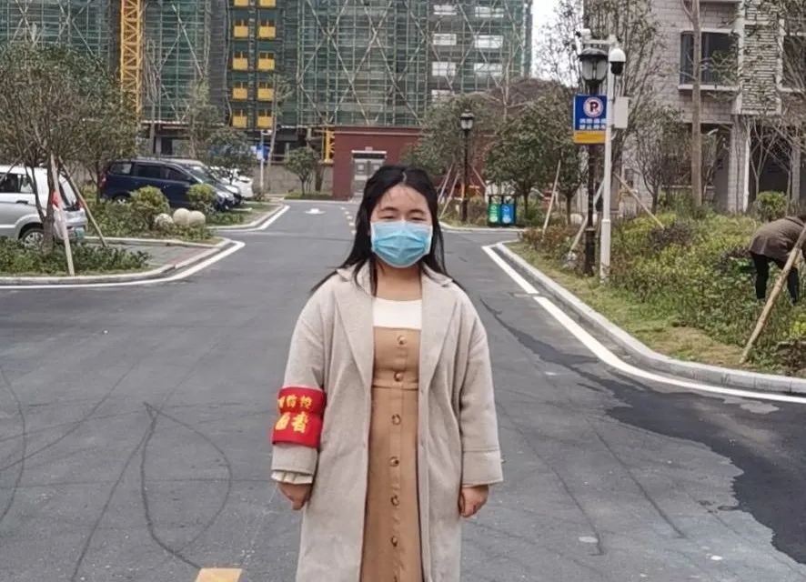 余晓敏,女,中共预备党员,计科1711班员工,湖北潜江人。疫情刚开始,她看到党员干部逆行而上,冲在抗疫一线,心里除了为他们骄傲,也为自己不能给前线出力而遗憾。于是,在得知社区需要志愿者协助防疫工作后,她立马联系社区,表达了自己想要为防疫出一份力的意愿。经过几天的等待,所在社区的党支部终于通知她参与疫情防控工作了。