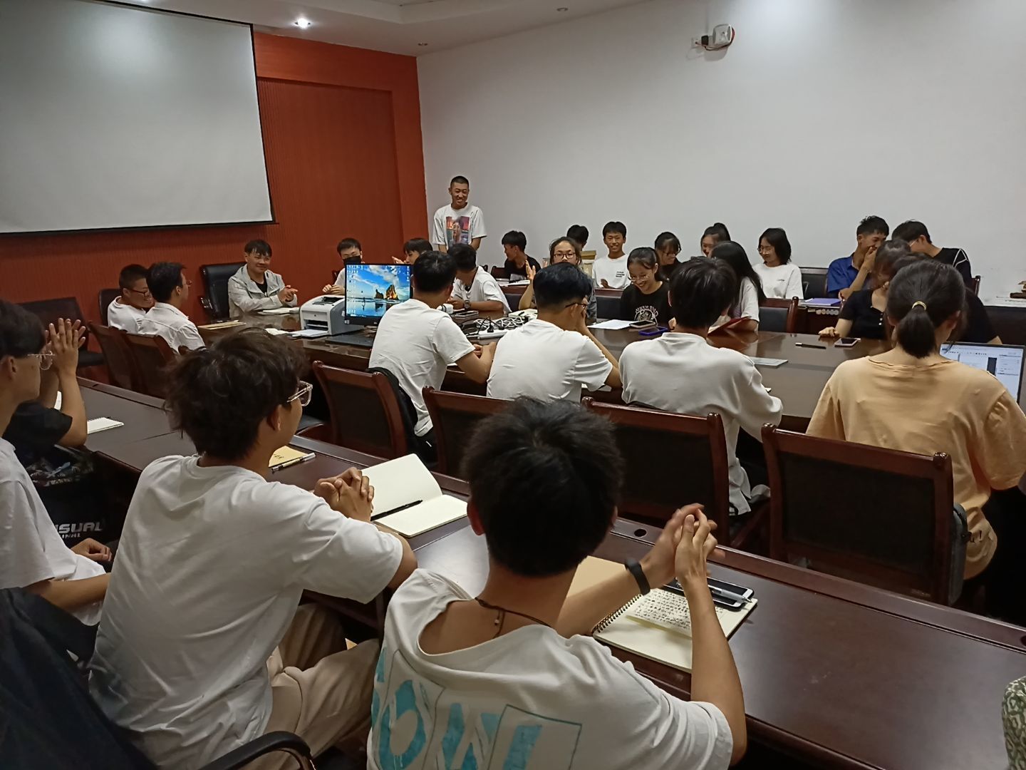 李嘉昱对干事们的生活、学习等方面提出了要求,他希望干事们积极参与班委竞选、踊跃参加学科竞赛,在学习上勇争上游、在生活中严格要求自己,处处起到模范带头作用。随后,大家分别进行了自我介绍。最后,各个部门向干事们介绍了本部门的具体工作和要求等。