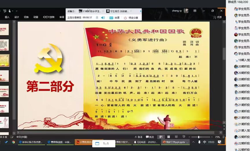 活动伊始,全体成员起立,奏唱国歌,重温入党誓词,现场交纳党费;随后,毛小娟带领全体党员集体学习了《习近平总书记在文化传承发展座谈会上的重要讲话精神》《习近平同团中央新一届领导班子成员集体谈话并发表重要讲话》等相关文件,引导广大党员干部自觉把思想转化为坚定理想,不断锤炼党性,自觉传承中华民族优秀传统,积极发挥模范带头作用,真正将所学所悟贯彻到工作、生活和为同学们服务当中去。